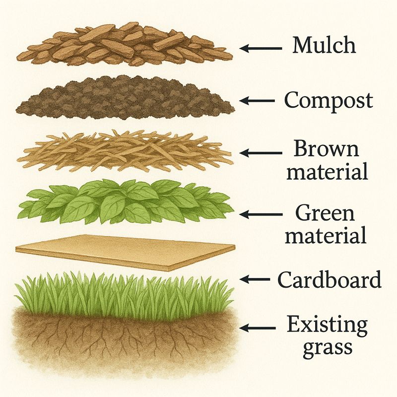 Build soil by layering organic materials directly on existing ground. No digging required.