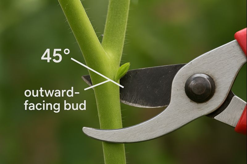 Cut at 45° angle just above an outward-facing bud